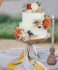 Bring rustic charm and boho elegance to your celebration with this Burnt Orange & Beige Cake Flowers Set. Designed to complement a variety of themes, these pre-made arrangements add warmth and sophistication to your cake, perfect for weddings, birthdays, baby showers, and more.